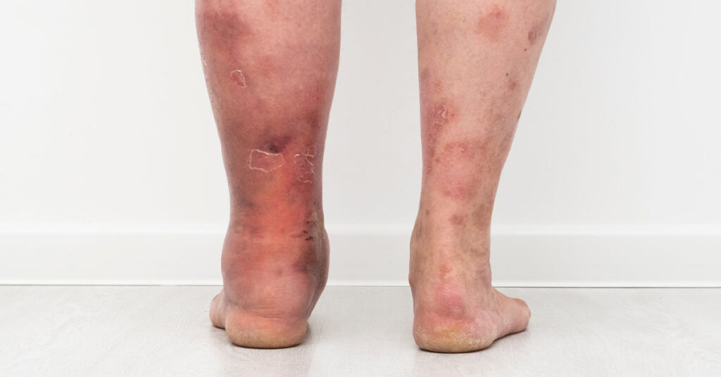 - Geralmente inchaço nas duas pernas.